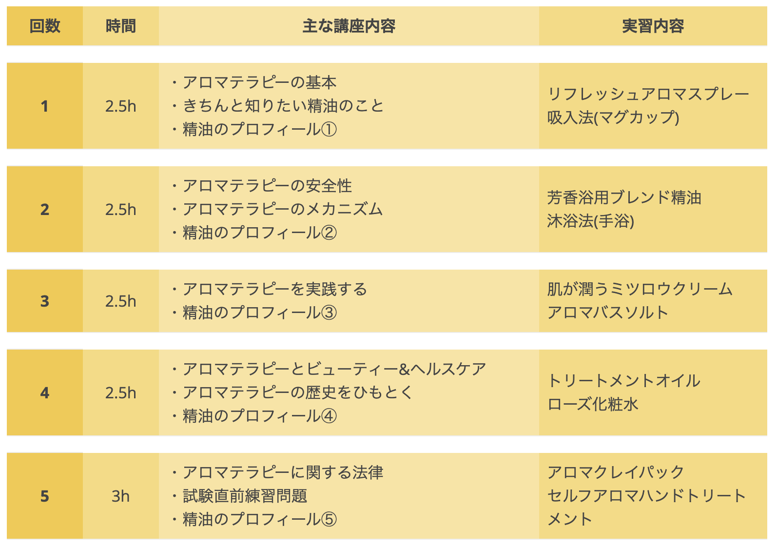 ●カリキュラム / 2.5時間×5回(5回目は+30分)13時間
